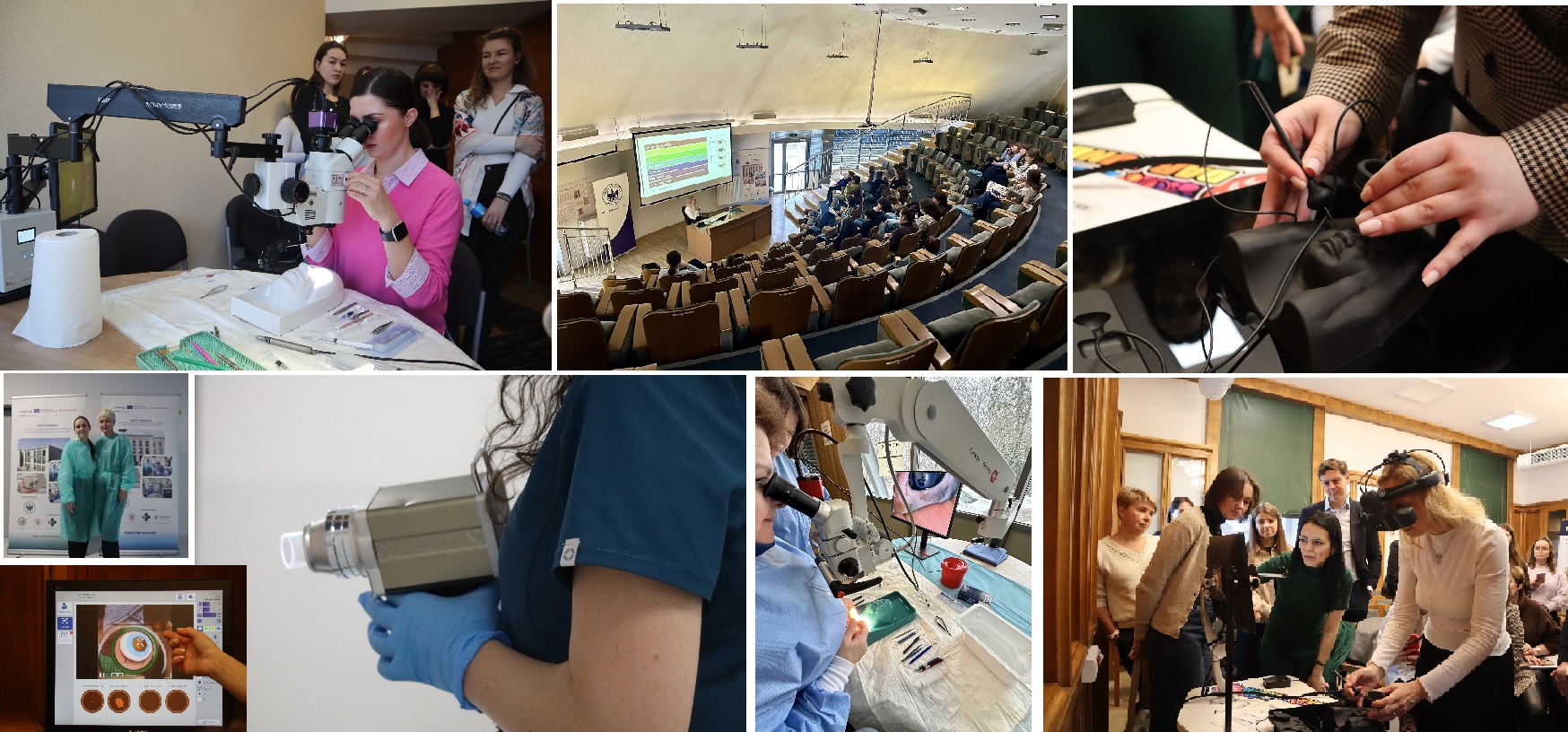 W lutym przeprowadzono trzy szkolenia obejmujące zajęcia teoretyczne i praktyczne, ukierunkowane na podnoszenie kompetencji w wybranych obszarach okulistyki (telemedycyna i chirurgia rogówki) oraz zapoznanie uczestników z organizacją pracy klinik, nowoczesnymi metodami diagnostycznymi i terapeutycznymi, a także standardami opieki nad pacjentem. Spotkania te stworzyły przestrzeń do wymiany doświadczeń oraz budowania współpracy międzynarodowej. Relacje z tych wydarzeń dostępne są na profilu projektu na Facebooku: